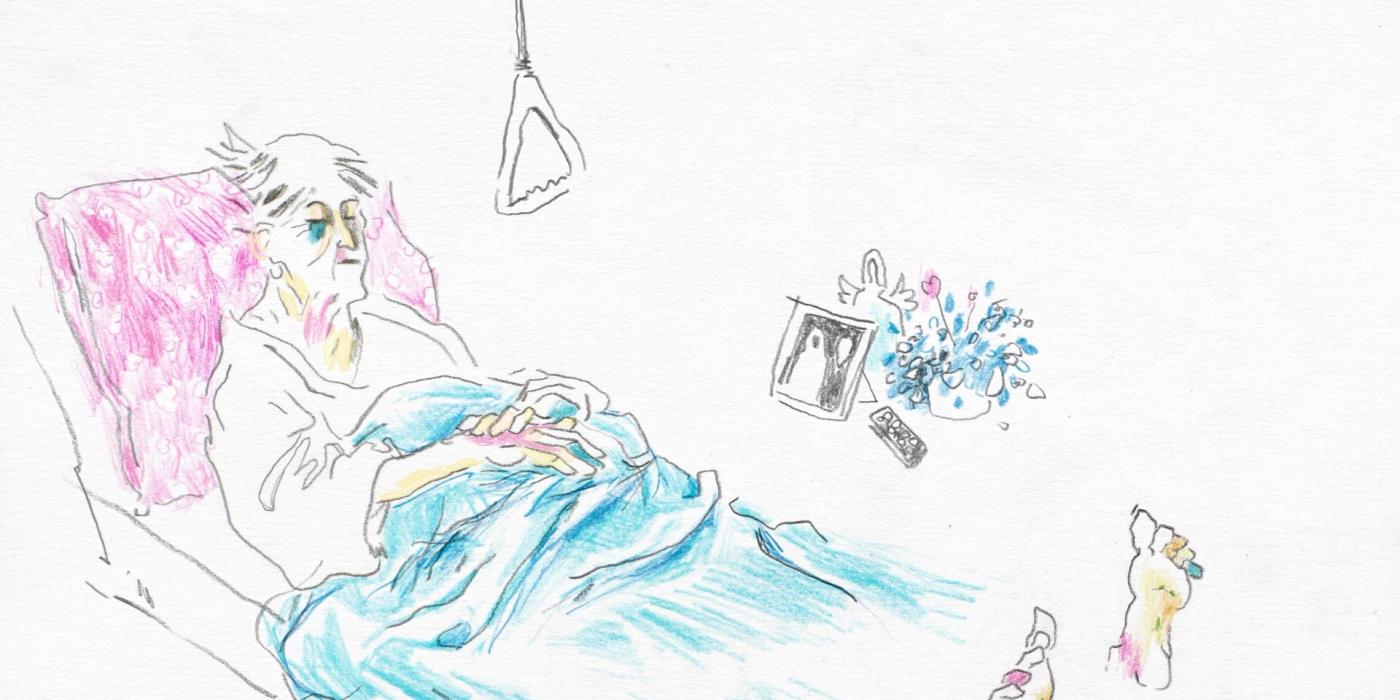 A cracked material looking like bark… Time seems to have stopped around the Villa, when suddenly a silhouette passes. Inside the building we discover weakened bodies, auxiliary nurses and a black cat. Between an episode of «The Young and the Restless» and a yogurt, we watch the time go by, slowly, repetitively. Only crucifixes, radios, and puppets, kept as relics in the rooms, appear to resist time. Then all of a sudden, there is a loud crash…