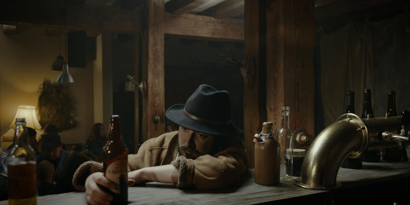 "Kādā lauku krogā koncertēt piestāj grupa no pilsētas. Kontrabasists, noguris no grupasbiedru ambīciju trūkuma un saņēmis kārdinošu uzaicinājumu no bāradāmas, nolemj palikt iepakaļ. Kad uzaust rīts, viņš secina, ka vakardienas sarunubiedre līdz ar pārējiem bāra apmeklētājiem pazudusi, bārā viņš palicis pilnīgi viens. Viņam jādodas ceļā, lai atrastu, kā no pamestā nostūra nokļūt atpakaļ civilizācijā. "